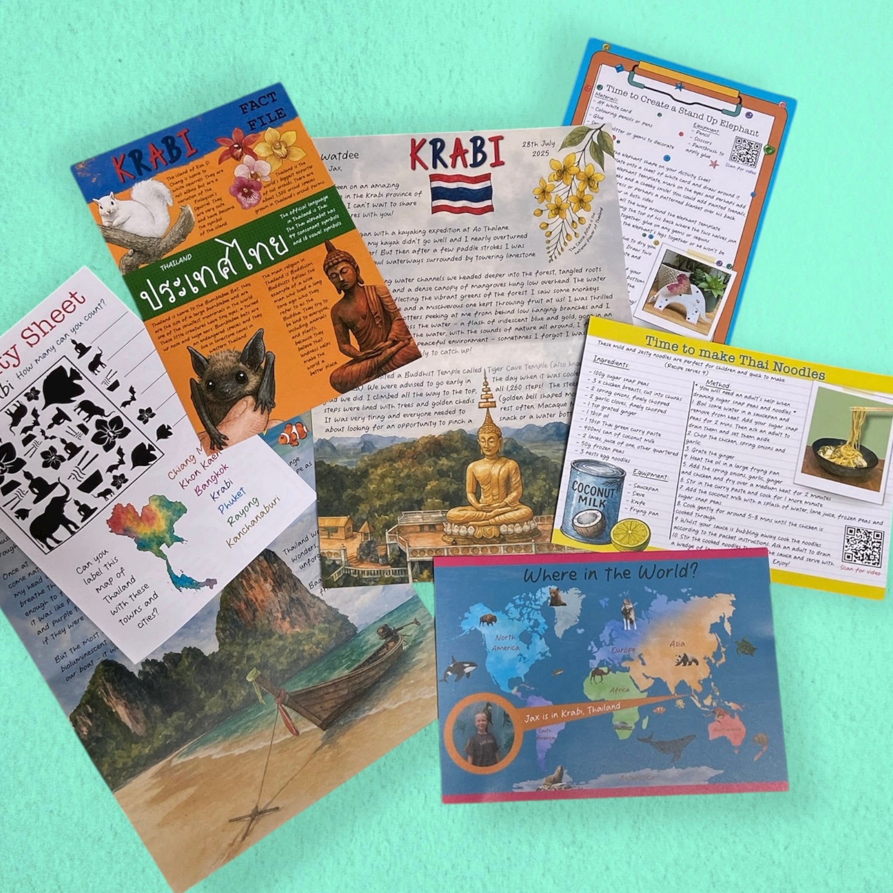 - A Recipe Card so you can try a local tasty treat, this month you will be making Thai noodles